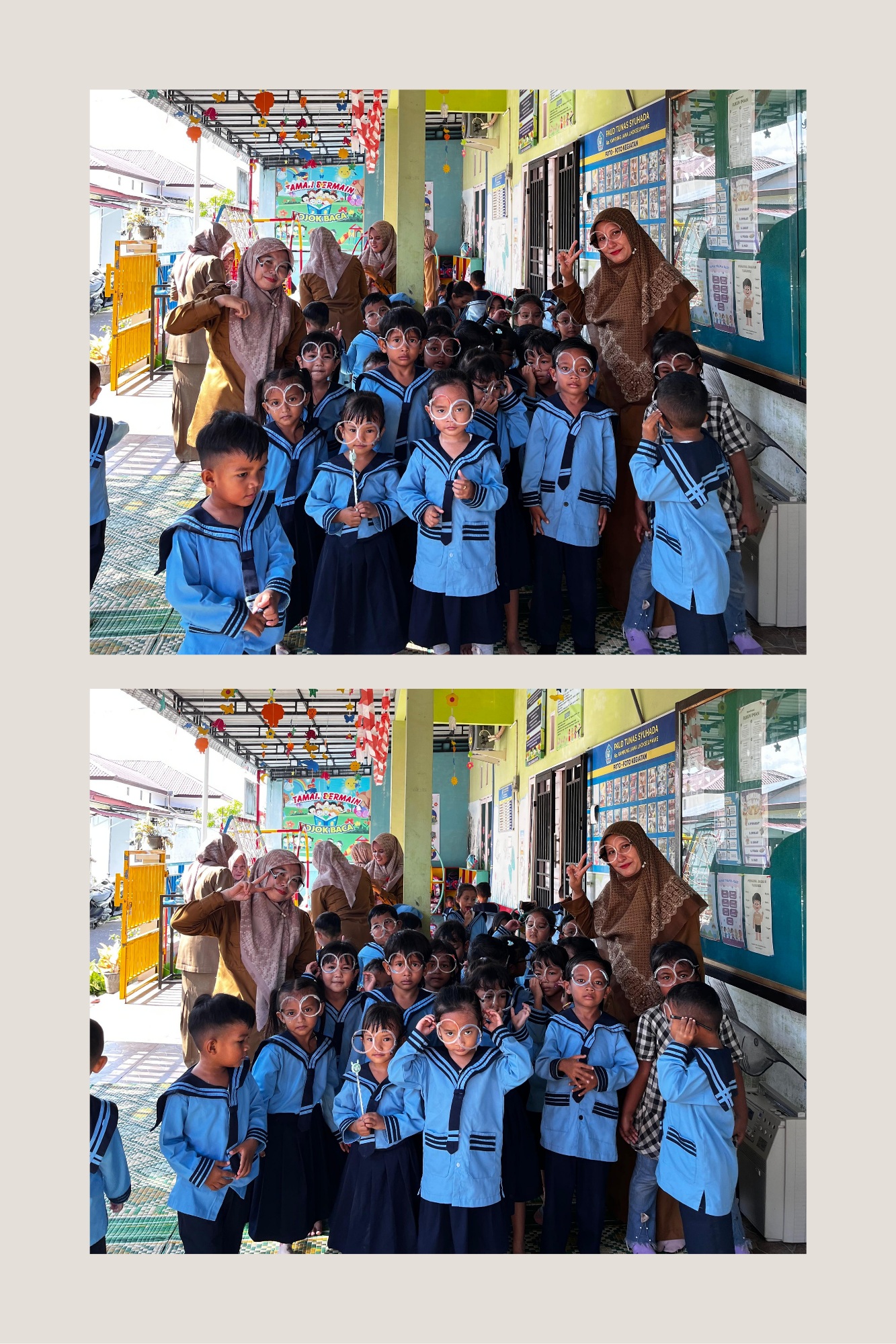 Selasa, 28 Oktober 2025Kegiatan Siswa/i membuat kacamata dari barang bekas yaitu aqua gelas, yang dibimbing oleh bunda-bunda guru. Fungsinya melatih motorik halus anak.